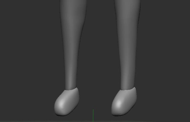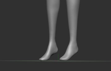 Sincethe character will be wearing high heels, so the foot needs to be stand ontiptoe, but you don’t need to sculpt the toes since they will be covered by theheels.