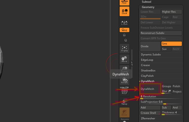 ClickDynaMesh. Go to Geometry > Dynamesh > Resolution: 16.
