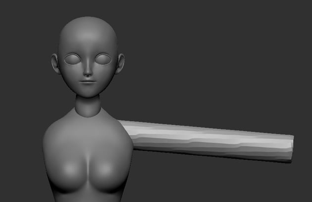 Subdividethe mesh by pressing Ctrl-D for easier shaping. Use Move brush (B-M-V) toshape the arm.