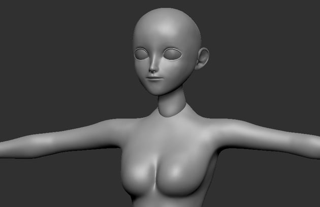 Sculptout the breasts using ClayBuildUp brush (B-C-B), then smooth the surface.