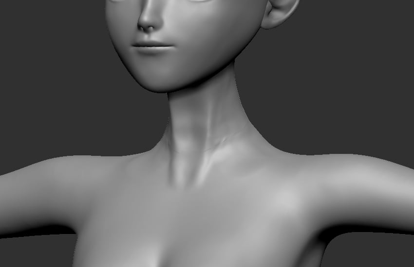 UseClayBuildUp brush (B-C-B) to shape the underarms and breasts details, thensmooth the surface.